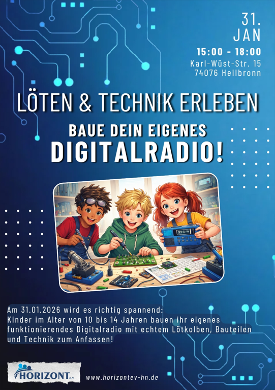 Am 31. Oktober 2026 um 15:00 Uhr findet ein besonderer Technik-Workshop für Kinder von 11 bis 14 Jahren statt. In diesem praktischen Event bauen die Teilnehmenden ihr eigenes voll funktionsfähiges Digitalradio – Schritt für Schritt, mit echten elektronischen Bauteilen und unter fachkundiger Anleitung.