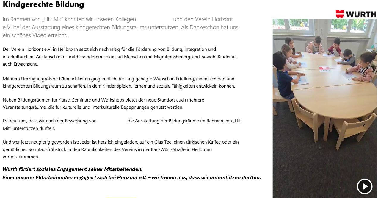 Die Einrichtung konnte durch die Unterstützung der „Hilf Mit"-Initiative der Würth-Gruppe realisiert werden, wofür wir uns herzlich bedanken.